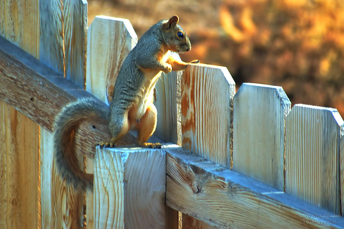 안정된 울타리 안으로 들어가려는 다람쥐..
