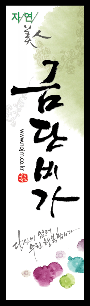 먹번짐, 전각 문양 등 여러가지 캘리그라피소스를 적용하였습니다.
