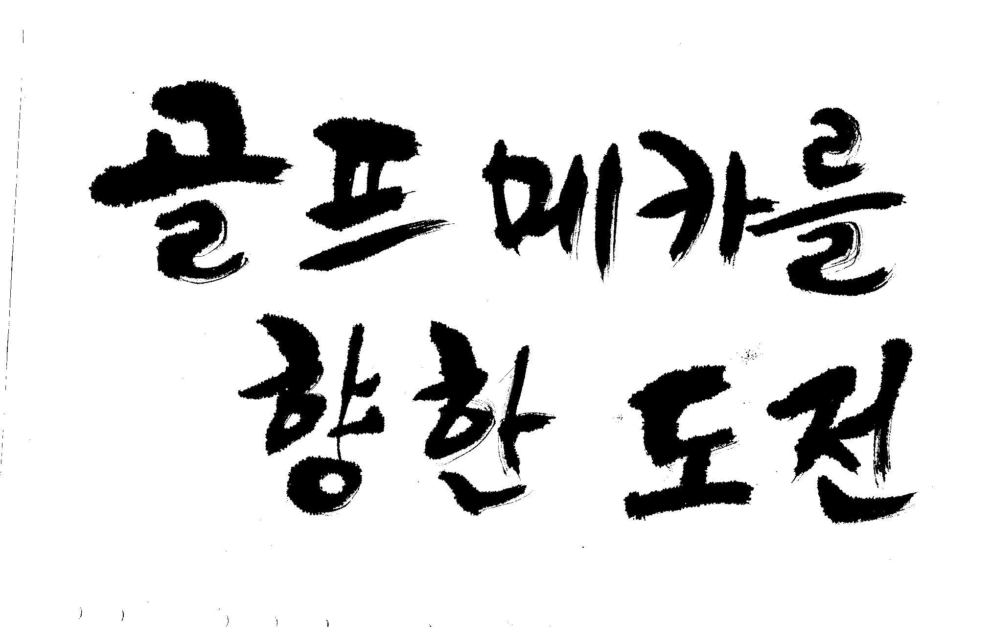 우경의 행복한 캘리세상-골프메카 김철호 일반 1 9102 2009.07.18 10:27 > > > > > 리듬감을 최대한 살리고 ㅡ 스포츠의 운동감과 밝음 > > 기교섞인 획을 배제--일반적인 느낌 > > 굵기변화를 통하여 도전 낱말을 강조 > > 스타일은 비슷하지만 ...한 사람이 썼으니까 ㅎㅎㅎ > > 서로 다른 글꼴을 올린 것은... 비교하여 보시고... > > 편집자에게 선택권을 주는 것입니다 > > >